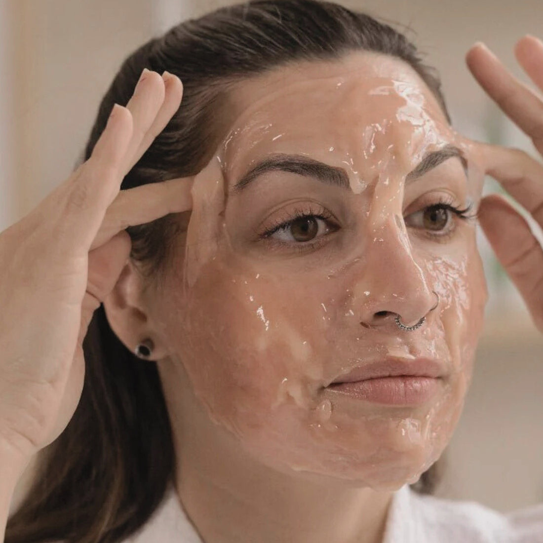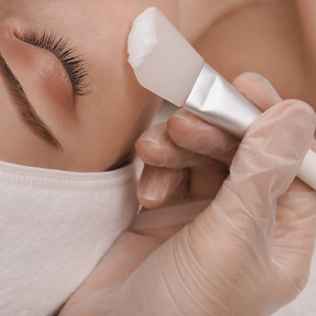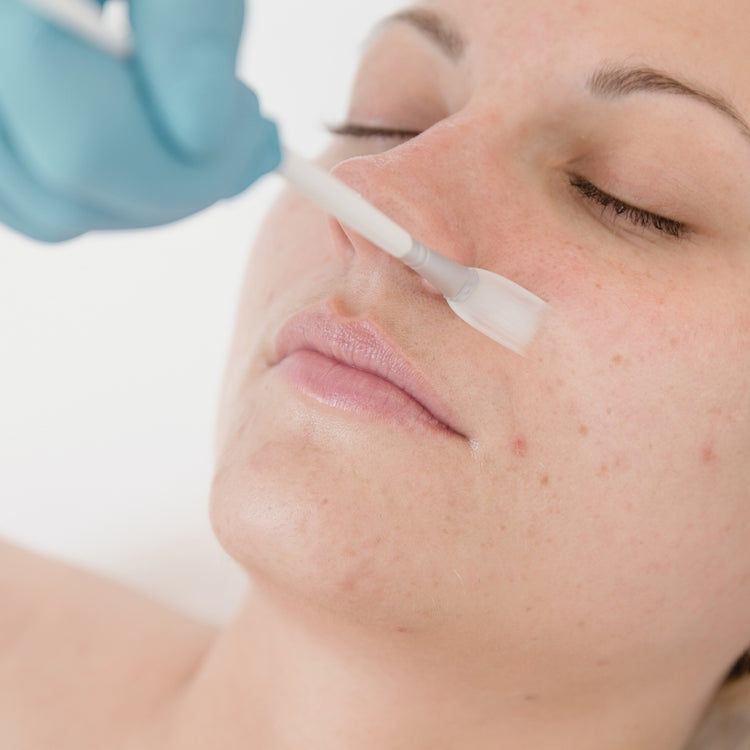 Targeted peel application for the under-eye, chest, or hands to refine texture and brighten specific treatment zones.